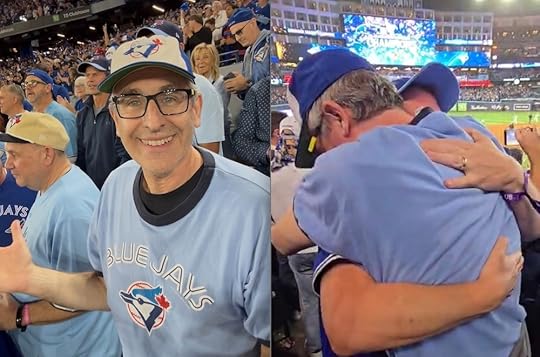 Jumping ahead to this year, that’s me in the stands, repeatedly saying “I don’t believe it!” after George Springer’s seventh inning homer put Toronto ahead of Seattle in Game 7 of the American League championship series, then hugging Jonathan after the game was over.