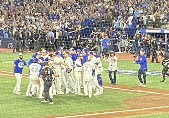 The Jays celebrating their 2025 American League pennant on the field after the game. I didn’t get into the clubhouse this time!