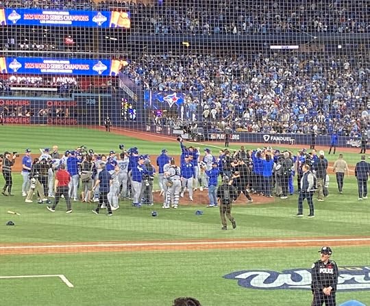 Game 1 of the 2025 World Series. Addison Barger and company coming off the field after Barger’s pinch-hit grand slam. Barger’s blast was part of a seven-run sixth inning that broke open a 2–2 tie en route to an 11–4 victory. It was fun!