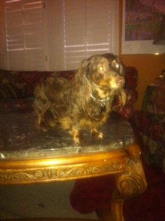 Here's the odd part--we all get downstairs to Cocoa and she's fine!!! Like not a scratch, not spooked, no broken back or legs, but 100% awesome, smelly wiener dog!!! I hugged her for a good hour, then kept a close eye on her all night, afraid she might have internal ouchies. Two days later, she's doing great!! Still chasing evil squirrels and growling when anyone gets too close to her Dingo bone!!!