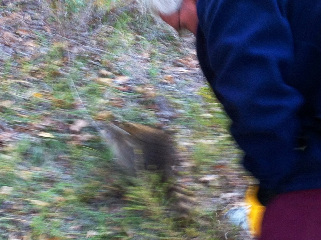The blur is the coon running away!!Daughter saw the pictures and worried what if he has a family? I assured her we will set the trap again--just in case. If there are more, we'll let them loose in the same place. Hubby and I hope our coon was a bachelor stud, and is now speed dating at his new home all the way across the Arkansas River!!