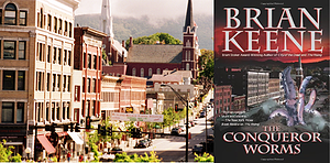 As an instructor atColby-Sawyer Collegein New London, NH, I teach academic writing to the first year students every fall semester. One of the most valuable lessons I wish to impart on them is the importance of giving due credit when borrowing from the work of others.With this in mind, I present to you the first of many posts in which I will do the same, sharing my sources of inspiration when it comes to my own fiction.Leading off…Brian Keene!It is only fitting that we begin with Brian as he has been not only a dependable source of enjoyable reads throughout the years, but has also played such a big role in helping me achieve my dream of becoming a published author. But before I go into why Mr. Keene has played such a significant part in my own writing journey, allow me to brief you on his very significant contribution to the horror genre.From his website,briankeene.com: "His 2003 novel, The Rising, is often credited (along with Robert Kirkman’s The Walking Dead comic and Danny Boyle’s 28 Days Later film) with inspiring pop culture’s current interest in zombies. Keene’s work has been praised in such diverse places as The New York Times, The History Channel, The Howard Stern Show, CNN.com, Publisher’s Weekly, Media Bistro, Fangoria Magazine, and Rue Morgue Magazine. He has won numerous awards and honors, including the World Horror Grand Master award, two Bram Stoker awards, and a recognition from Whiteman A.F.B. (home of the B-2 Stealth Bomber) for his outreach to U.S. troops serving both overseas and abroad."I first came upon the fiction of Brian Keene many years ago while browsing a BORDERS bookstore. It did not take me long to discover that Leisure Fiction, an imprint of Dorchester Publishing, was taking up the majority of the horror shelf space that wasn’t occupied by King, Koontz, and Rice. And while Leisure offered many great horror authors to choose from, one in particular caught my eye. Though some would argue that “you can’t judge a book by its cover,” often times it’s the cover that makes you pick the damn thing up in the first place.Such was the case with “The Conqueror Worms,” Leisure’s re-titled Keene novel, “Earthworm Gods.”Now, I have read and heard many folks dissing the cover of this novel, and even Brian himself has gone on record to call this cover "cheesy." But as cheesy and obviously photoshopped as this cover may be, it absolutely captivated me.Why you ask?Because it looked like giant worms were coming out of the street in Rutland, VT, a town only twenty-five minutes from my house. Who knows how long I must have stared at this cover, examining the details to see if I was mistaken. But even now, comparing a photo of downtown Rutland with the Worms cover, the resemblance is uncanny. (Note the line of block shaped buildings, the red church, and the mountain backdrop.)And so, I bought the book, intrigued by the Poe referencing title, the eerily similar landscape of the cover, and the interesting synopsis on the back. The book proved to be an extremely entertaining read, and before I knew it, I had burned through the entire Keene library offered by Leisure.Flash forward to the summer of 2011. I was just about to graduate from my MFA program and decided to give myself a little graduation present: a trip to Austin, TX to attend my very first writing convention,World Horror. As well as being a guest of honor, Brian was also leading a workshop for aspiring writers, where he would cover everything from how to find ideas to what to do once your novel was complete. The workshop ended up being a fantastic experience, and hands down my favorite part of the convention. Our group was small, allowing for an intimate environment that gave each of us wannabees plenty to walk away with. Though I learned tons of valuable tips during our time together, the photo below captures perhaps the best piece of advice Brian had to offer:That’s from the notebook I brought to the workshop that I have still kept to this day. And while it may not be the best fitness advice, it served as the best launching pad possible for an aspiring writer:If you want to be a writer, you have to write. It still amazes me how many people I encounter both in-person and online that seem to have missed this memo.I got to spend even more time with Brian atNECONlater that same year, hanging out at the many cookouts and campfires the convention is known for.We met again the following November at the first everANTHOCONin Portsmouth, NH. Though it had been several months since we had seen each other, Brian spotted me before I even exited my car. Sitting in the driver’s seat with the door open, perusing the convention’s schedule, Brian approached me to say hi, shake my hand, and ask me how I’d been. Wasn’t I, the fan, supposed to do that to him, the established writer?But that single moment encapsulated who Brian Keene really is—a down-to-earth, friendly, humble guy who appreciates his fans and respects his fellow writers, whether they have found success or not. In fact, Brian goes out of his way to help up-and-coming writers find success. He’s spoken of this during many panel appearances and speeches, how he feels it’s the responsibility of the current generation of writers to lend a hand to the next wave.Speaking from personal experience, I can say these are not just words. Brian read the original manuscript ofTHE REMEDY, offered me invaluable notes, and provided a blurb as an unexpected bonus. He suggested places to submit to, and when I finally found a publisher, he looked over my contract and told me things to look for that I would’ve never thought of myself. To this day he replies to my emails whenever I bug him, despite how swamped he may be with deadlines and other business.It probably sounds like I’m kissing ass here, and yeah, maybe I am. But if there’s anything you can walk away with from this lengthy post, it’s this: Even Brian Keene, who has helped not only me