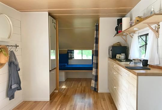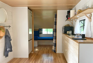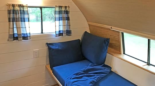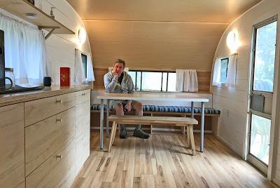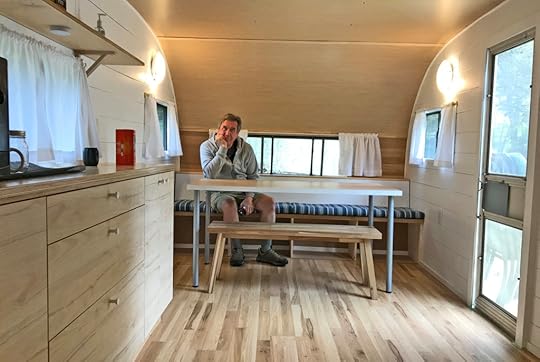John sitting at the writing table. Yes, other people can use it too...sometimes Looking to the back of the trailer