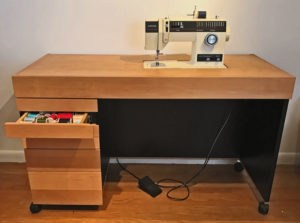 Years ago John even made me a sewing table with perfect drawers for all the treads and pins and stuff. I used to like sewing. Quilts. Clothes. But sewing’s not my favorite thing anymore. My back hurts. Curtains are especially dull—seams up two sides, two seams at the top for the rod to go through, and a hem seam. And ironing between each seam. Seamsboring to me.