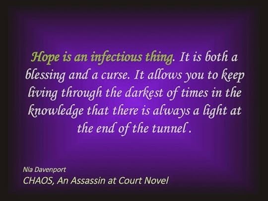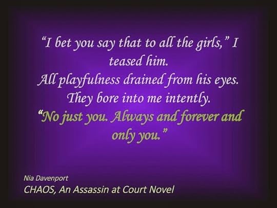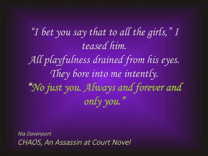 Chaos has been out for almost a month now! The reviews being received about it are fantastic. I am currently writing the conclusion to the Assassin at Court series. It's working title at the moment is Ascension. In the book we get to see Zander transform from human to fae, from boy to man and into a true leader. We also get to see Skyler, a much stronger person now than she was when she left Faerie, in all of her kick-ass glory in the realm! I am thoroughly enjoying writing this book. Two of the things that I am loving most are building the romance between Skyler and Zander and developing the colorful characters of the Order's leaders. I think Selene is my favorite out of all of them. She's gorgeous, and fiery, and refuses to take shit from anybody. Lor is an asshole, but he is sooo much fun to write too :)