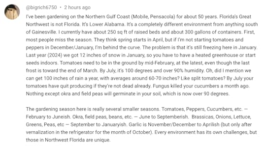 This is good insight on the difficulties gardening in the Florida Panhandle:
