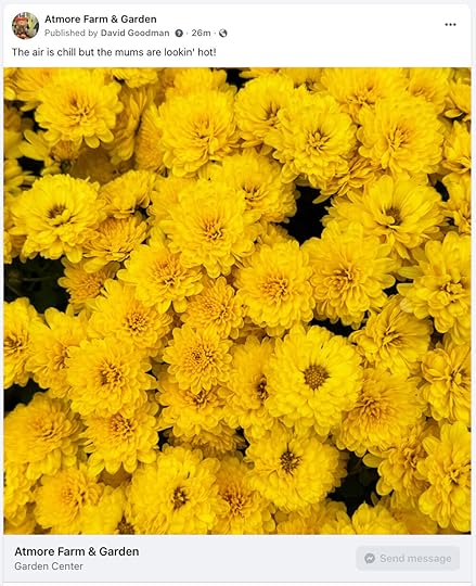 It’s amazing how many mums sell here in the Deep South. They are incredibly popular for porches right now. They don’t last all that long, but they look amazing for a bit. Rather like the ferns everyone hangs on their porches in spring.
