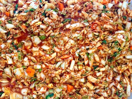 Fair Harvest honeybees produced this delectable honey and the just dug, by hand from loose humus rich soil purple sweet potatoes were moorishly sweet and sticky when dry baked.Those were the last of the radishes and they starred in a couple of the Japanese dishes I made in my Koji and Oden classes later that week.