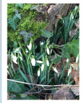 Snowdrops coming through the moss, twigs, ivy and a strange looking log. Using your imagination can you see a small creature peeping out?