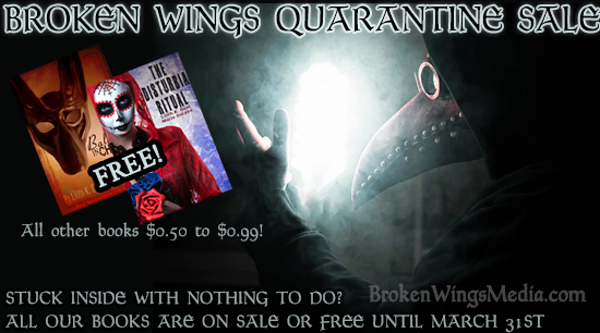 This offer is available only through Broken Wings Media's online store through Payhip and is not applicable to any other online book retailer such as Smashwords or Amazon. Offer ends April 1st.