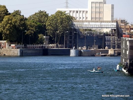 As you can see from the time above, we’ve been waiting a few hours. Time to get under way again. As I said Monday, before we reached the Esna Lock, we would first pass through a narrow channel on the west side of the Esna Lock Dam. And if don’t know otherwise, you might think this channel is a lock. I know I cetainly did.