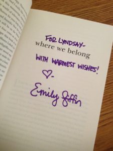 One fun fact about Where We Belong…I received an advanced signed copy from Emily Giffin!