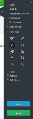 Prior to saving the clip you can also choose the notebook in which you want to file the note and you can add appropriate tags. The newest versions of the webclipper also include markup options that allow you to add notations. You can markup with a highlighter, a marker, stamps, text, arrows, a pixelated blurring tool, and a cropping tool to resize the clip.