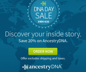 DNA kit sales are on now through May 14, 2017. The following links take you to the sales pages and also generate a commission to help support Cyndi's List. Please share this page with your friends and thank you for your support. Cyndi's List also has a category of links for DNA research located here: DNA, Genetics & Family Health