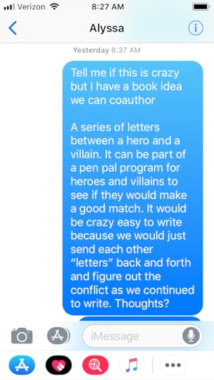 OK, let me explain.It all started when Alyssa Roat and I created parody accounts on Twitter. She was a cliche YA villain, I, a cliche YA hero. We would playfully insult each other and interact with the other parody accounts.Then the inevitable happened when I read a book of love letters back and forth between two unlikely characters (and my best friend hopped onto one too many dating apps).Why not merge the two?So I sent Alyssa this text message:We decided, after about an hour's worth of thought, to do a dating app instead of letters, and upped the ante with super heroes.Both of us were working 7+ jobs (combined) that summer and didn't think we'd even get it done by the time we returned to Taylor University that fall.So we hopped on a Google doc and planned to write it in 60 or so days.Nine days later we'd finished, "Dear Hero," where a superhero and villain meet on an app to find their future nemesis. Whoops.That never happened before. I usually don't co-write well with others, but we just clicked. It just worked. Recovering from our lack of sleep, we got to work on editing and preparing the manuscript to pitch to editors.Caption: Alyssa and I cosplaying our characters. Yeah, here's how that went.In person and over email, editors turned it down almost immediately. Because of the text-message/chatroom format it was too out of the box. It didn't really fit conventions or set formulas.The age group seemed tricky, too. Cortex and V, the two main characters, were on the edge of YA, being 18, but too young for New Adult or Adult. So we figured no one would pick it up after a while.Fifteen months later, something strange happened.A publisher actually loved it. They loved how quirky it was and the out-of-the-box plot ideas.That publisher was and is INtense Publications.After Alyssa and I fan-girled over their team and mission, we waited for our agents to do a long process of negotiating (two months).Lo, and behold, as of yesterday, we signed the contract with INtense, and anticipate a January 21, 2021 release. We cannot be more thrilled:So in short:- We wrote a book in 9 days- The editors said "Bleh, no."- One editor said "Amazing!"- We got a contractAnd we cannot wait for you to meet the characters.
