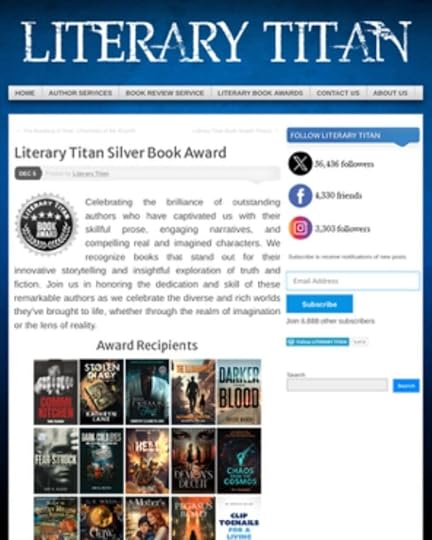Awards! A first for us… BookFest Book Award, an American Writing Book Award, and a Literary Titan Book Award.