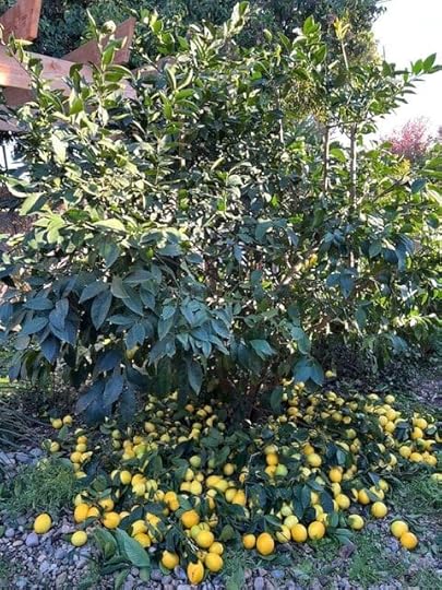 Harvest of Meyer lemons. Oh! If you could only smell the aroma. A cross between lemon and Mandarin orange, the taste of these beauties is even better.