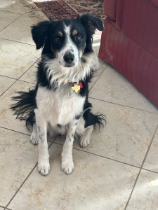 Duke’s temperament is that of our prior Border collies, likely because Aussies and Borders are so closely related. He quickly learns tricks, possesses incredible energy, loves to chase jack rabbits and deer, and is protective of his human family. He quickly learns patterns of behavior such as when we dress differently to leave the ranch, he will lose interest. He also loves to take walks about the ranch, ranging far ahead or behind but returning quickly when called. Thus far he has not had close contact with our cattle but shows high interest in the large animals when staring at them through the windshield of the pickup. Once fully settled in, Duke’s herding prowess will be tested when the need arises to move the cattle to different pastures.