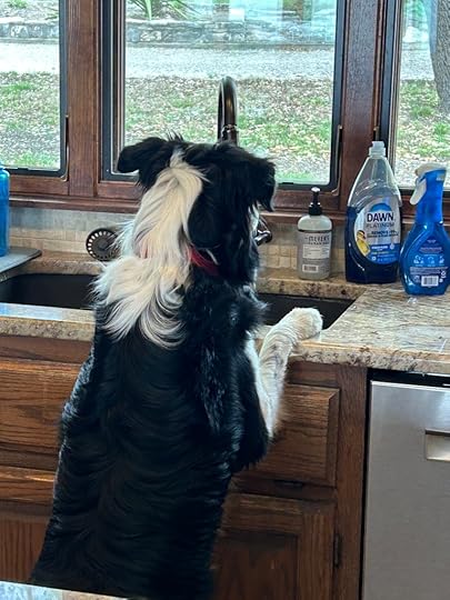 Perhaps his greatest pleasures have been two fold. First, he loves to stand on the sink cabinet and watch the birds outside at the bird feeders. He watches them intently, never barking or shooing them.