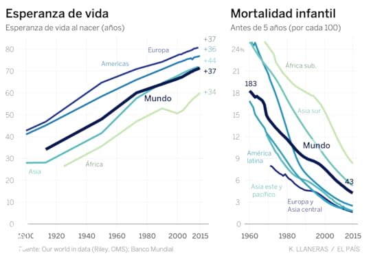 ¿Creen que la oscuridad se cierne sobre nosotros? Pues menos drama. Si algo he aprendido en estos años de empresa es que hay que irse a los datos. Y ahí están: EL MUNDO MEJORA EN CASI TODOS SUS PARÁMETROS. La esperanza de vida es mayor, se ha reducido la mortalidad infantil, viajamos más, hay menos violencia, el PIB por habitante crece… ¿Un mundo perfecto? PARA NADA, pero sí es cierto que nunca antes la humanidad había sido tan exigente consigo misma, y aunque los datos señalan que la humanidad está en la mejor situación de su historia, la mayoría cree que el mundo empeora.