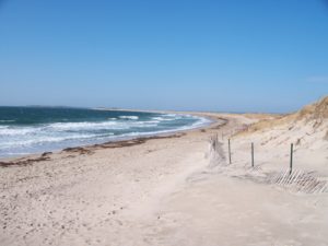 Napatree Beach, Westerly RI. This narrow peninsula between the Atlantic Ocean and Little Narragansett Bay was home to more than 40 families before the Hurricane of 1938. Their stout summer houses were pushed by the rising Atlantic Ocean into the Bay. Some of the residents reached Connecticut still clinging to their roofs.