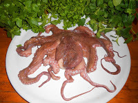 I was traveling with my parents and my three children when the contest started, so between sleeping in the car and unpacking, I wasted about six hours dancing around the first thing that popped into my head: octopus. For a less-than-two-minute education on octopuses (yes octopuses,not octopi), click here for a clip from Animal Planet's show Tanked (one of the few shows my family watches together with no grumbling).