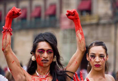 Trans activists in Mexico City, protesting violence against the LGBTQ community.