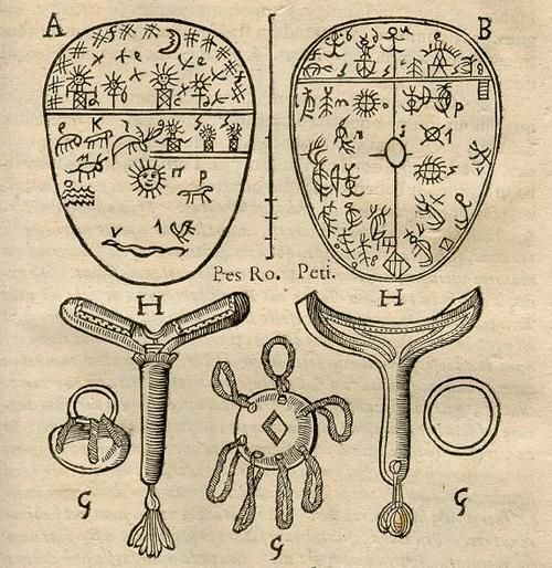Tambores que xamãs sámi utilizam também em curandeirismoEles também acreditam que este poder pode ser passado de geração à geração, mas que não são todos na família que desenvolvem esta capacidade, principalmente quando seus antecessores ficam velhos e adoecem.