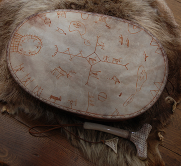 O tambor sámi é feito de couro de rena e tocado com um martelo feito de ossoA região de Alta é famosa pelos “rock carvings”, e tudo isso pode ser encontrado no museu que revela a herança que o povo norueguês herdou de seus ancestrais. Mas a presenca de um xamã não somente revela que o culto à divindades e sacrifícios eram feitos, como também foram confirmados por achados arqueológicos.
