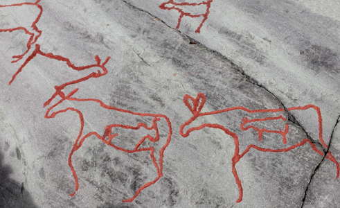 Através desse tipo de arte foi possível especular o estilo de vida que os clãs da idade antiga mantinham, sua relacão com a natureza, a importância da caça e pesca. Algumas imagens retratam barcos pesqueiros e ainda outras revelam interações com renas em aparentes emboscadas, caca aos ursos durante o período da primavera (quando a fêmea já pariu o seu filhote), e a presença dos alces como criaturas que provavelmente possuíam importância na fé destes povos antigos, além de xamãs que tocam tambores e dançam.