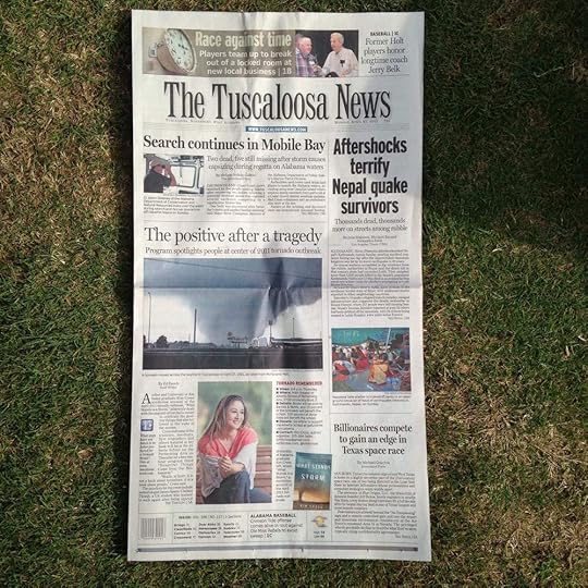 Turnout at Tuscaloosa events has been surprisingly poor, considering the book was set in this town and the storm such a big part of its history. I am not sure if people are tired of hearing about the tornado, or not quite ready to remember it so intimately. I'd like to emphasize that this is not an evening of mourning. It is an uplifting acknowledgment of how far we have come, and what we have learned, and gained, from 2011. It will be a testament to the healing power of storytelling, and I hope members of all facets of the community—storm victims, volunteers, rescuers, students—will come and join us.