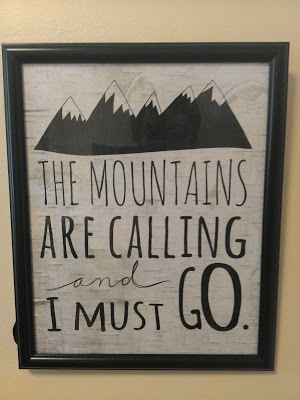 It's a quotation by John Muir, the famous explorer.  I love its adventurous spirit and wanderlust.  (Text: the mountains are calling, and I must go.)