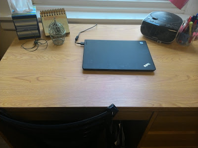 Here's my desk.  It is absolutely this neat everyday.  Yeah.  Totally.