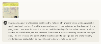I haven't ever seen a tool for converting handwritten charts to text in any of the widely available teacher-facing AI tool boxes. So, I'm guessing this isn't a high demand use case, but it sure saved me a lot of time, and made the material quickly available to my students.