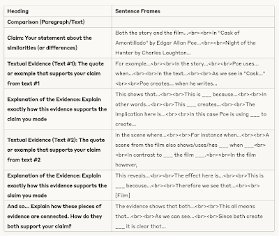 The photo, circa 2018?Years ago, in a different classroom, I had a glorious long whiteboard. It stretched for nearly the full length of one side wall of my classroom. One of my favorite things to use it for was listing sentence frames my 9th graders could use to help them craft body paragraphs of an essay. To take a picture of it I had to use the pano option on my phone, but I am so glad I took that picture. Fast forward to this past spring when my teaching partner suggested we revive the comparative analysis uint we used to do. I knew I would need these sentence frames again, but my current classroom (while beautiful) has only an eight foot whiteboard—not long enough to recreate this helpful scaffold for my current students.