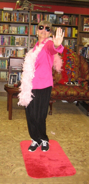 It's funny you should ask, because I know someone just like your friend. That snippy author Deborah Sharp runs around in a boa, pretending to be me. It makes me madder than a wasp with a ruined nest, I can tell you that. Last time I checked, she wasn't the one who was cast in a Hollywood movie. I put a picture on this page, above, so you can see her blatantly trying to steal my spotlight, not to mention my red carpet. (PS: Who wears a boa with sneakers?)