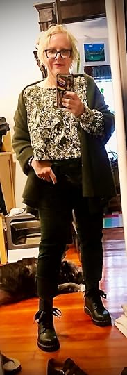And, lastly, to finish off this particular ensemble, on my feet was the birthday gift I requested from Sophie and her dad for 2024: green Doc Martens. I had Doc Martens boots in college, but they have gotten so much more comfortable now. I love them. I replaced Doc’s laces with some pretty green ribbon laces, and that completed the look, in my mind.