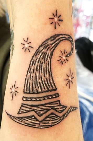 Whatcha think? Apparently I am good at tattoos. They don’t really hurt me, and I heal quickly and well. Every time I get one I agonize over it, should I get one, shouldn’t I? What kind of a person gets one? Is this the right one to get? But I have virtually no pain. I rubbed this on the sheets a little too roughly Saturday night, and it was ouchy for a minute, but otherwise I am fine.
