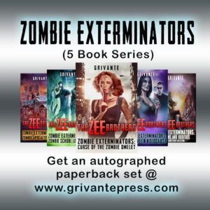 Need a gift for a zombie loving friend or family member? Get the ultimate Zee Brothers Collection with this autographed Paperback Set! Featuring all 5 books from the epic Zombie Exterminator’s Series autographed by the author! Available exclusively on our website!