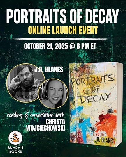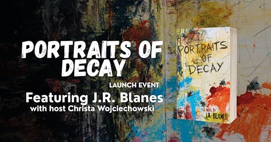 I’m honored and excited to be hosting a live Zoom launch party for the debut novel by J.R. Blanes, Portraits of Decay. All are invited to come and join us!