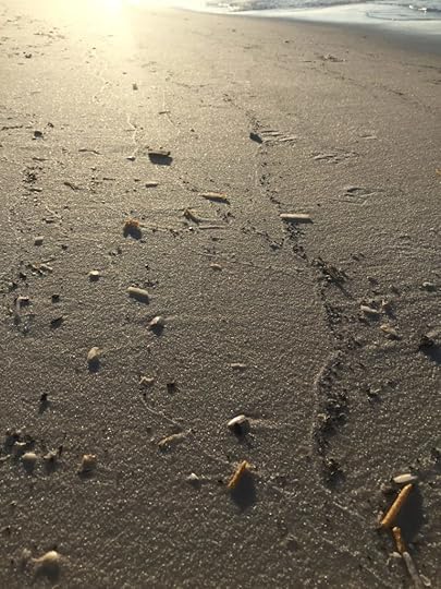 When we reached the beach, the sun was already wavering. The shoreline was practically empty, and I couldn’t see any other swimmers. I stepped through the breaking waves and strode then stroked out to my favorite spot, shoulder deep. I didn’t wait for Curt, who took his time getting used to the water.