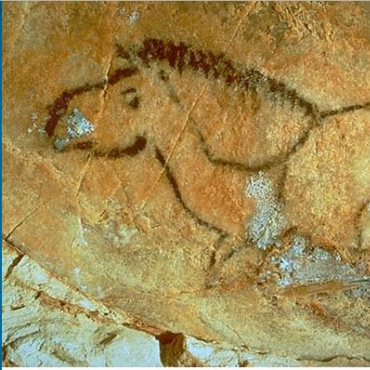 Penguins, seals, horses, bison and aurochs, all in one space. Painted of course, by cave dwellers who lived there up to 27,000 years ago. My notions of pre-history are a bit vague, the various ages merging into a sameness in my mind, populated by our grunting, gesticulating forefathers, gathered round a fire clad in bearskins. But to be more exact, that's the paleolithic, which stretched for 2.5 million years before gradually giving way to the much shorter mesolithic, which itself gave way to the neolithic. Apart from painting, paleolithic people developed rudimentary stone tools and a belief in the afterlife.