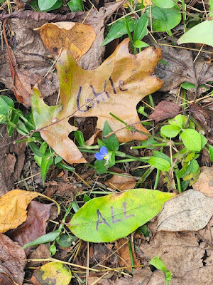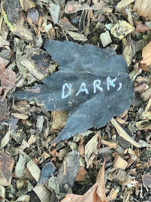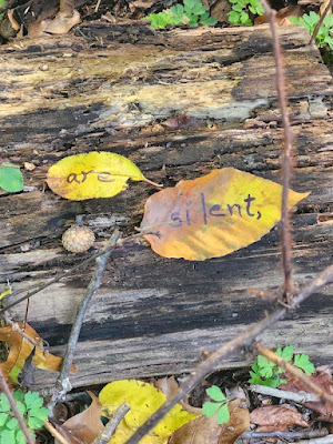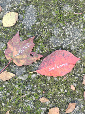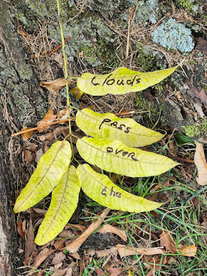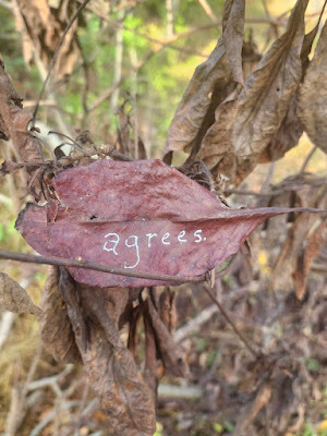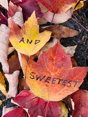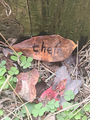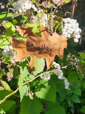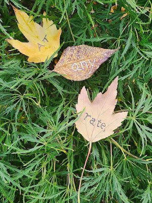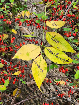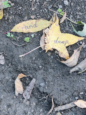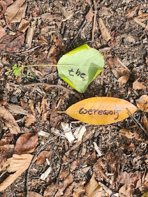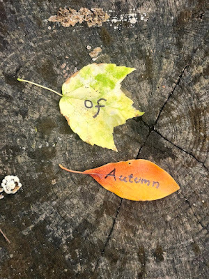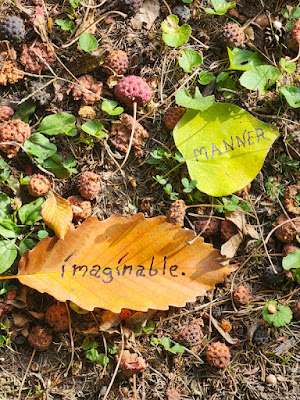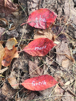 Above: Every autumn, I create a Halloween story, write it out on leaves (one word per leaf), photograph the leaves, and then abandon them where I found them. The story is then serialized here, starting on October 1 and concluding on the 31st--All Souls Day.