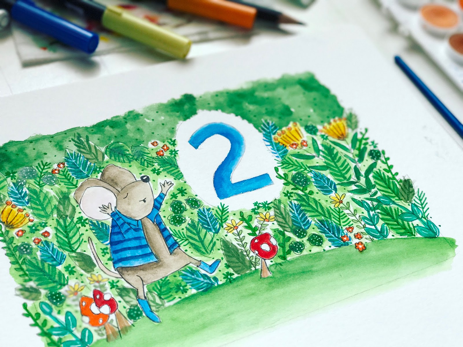 Above is a peek at one of the children's greeting cards I'm currently hand-painting and is part of a special birthday series to be released later this year. It's going to be an adorable set so am looking forward to sharing more with you in the coming months.