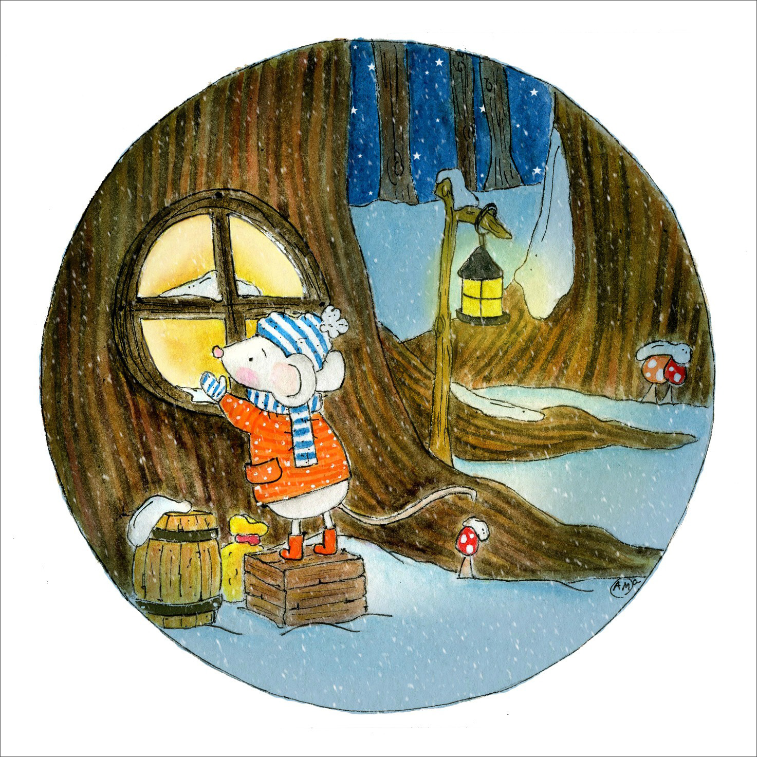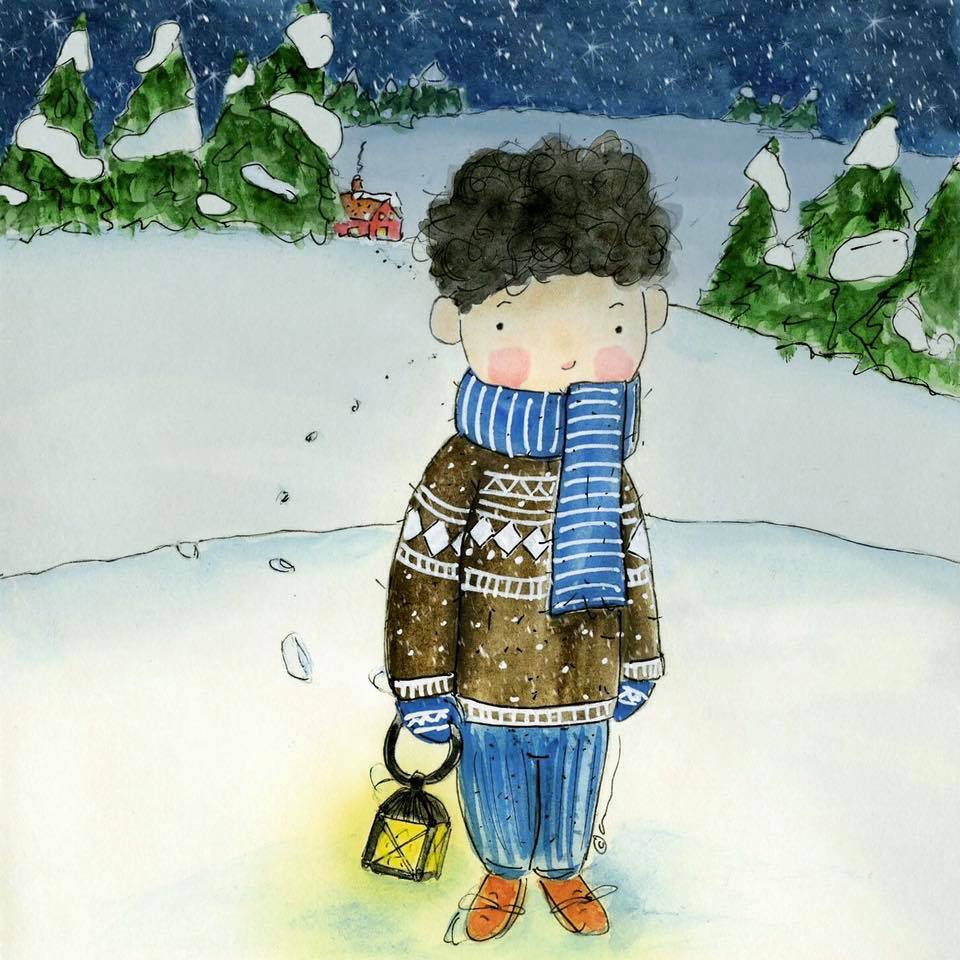Last Sunday I shared with you a preliminary sketch of Jacob and his grandfather's lamp. This week, I'm sharing with you the finalized piece. It took some time trying to decide not just what colors worked well with this clothing in this snow scene but how to best portray the lit lamp. It was a bit of a struggle but finally came to what I felt was perfect for this heart-tugging illustration, drawing the reader in to want to know more about Jacob's journey.Please do accept my apologies for still needing to make rounds for last week's Sunday Sketches. I hope to be all caught up be the end of this evening. Happy Sunday Sketches!