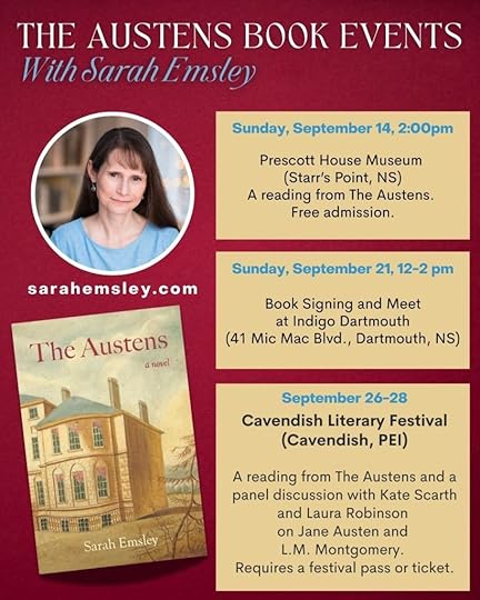 Kate Scarth had a similar experience of visiting Green Gables as a child and feeling inspired by L.M. Montgomery and Anne, and she spoke about literary pilgrimages in a recent CBC interview. I’m really looking forward to our conversation about Montgomery and Austen and to reading from The Austens.