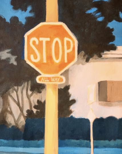 This painting is based on photographs I took when driving home one night in Burbank, when I saw this coyote scavenging out of the trash cans behind the grocery store.