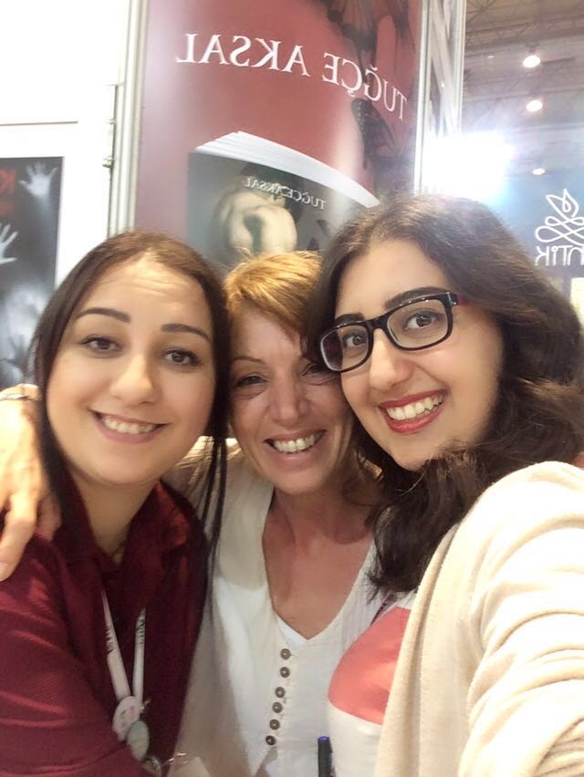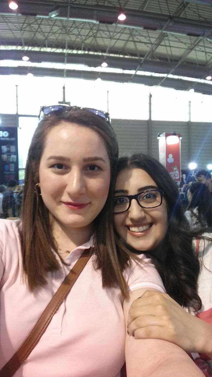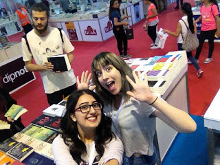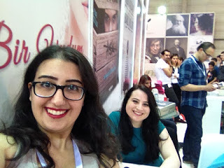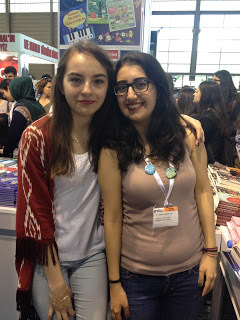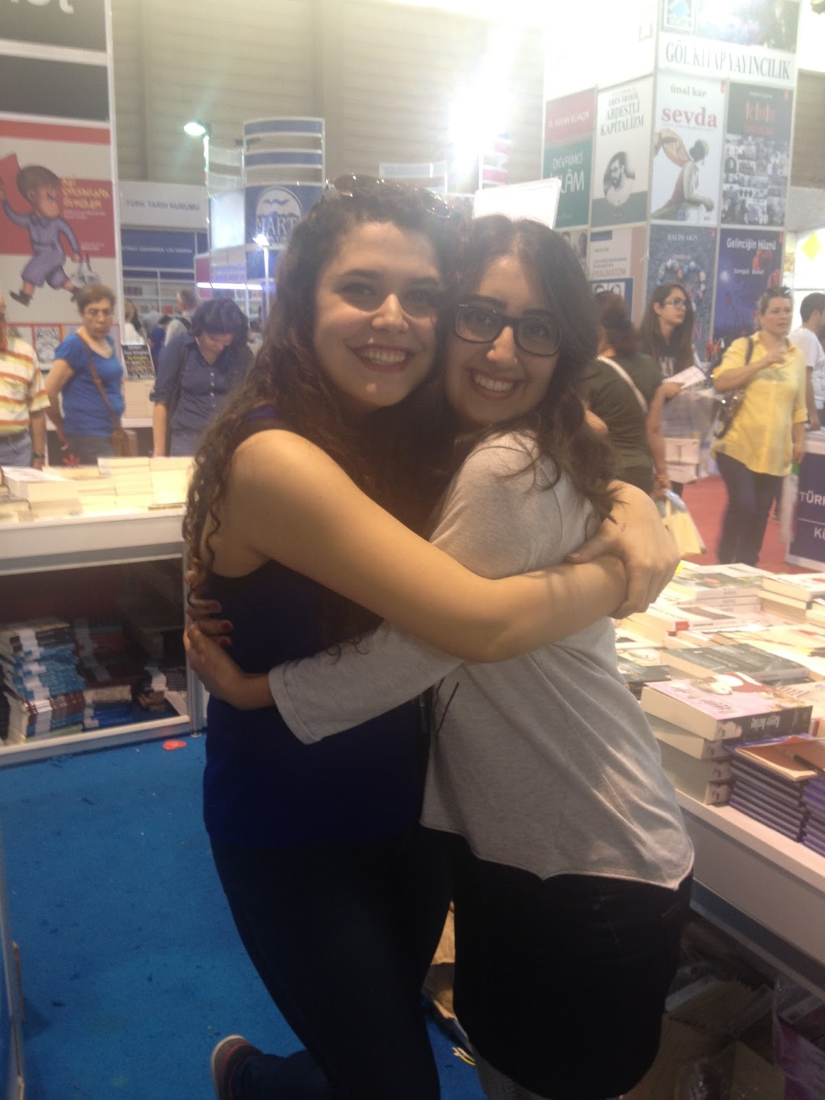 Fuarda kader ikizim Özlem de vardı. Şu sarılıştan anlayacağınız üzere çok seviyorum onu. Özlem'le hikayelerimiz çok benzer. İkimiz de hukukçuyuz, ikimiz de çevirmeniz, ikimiz de bu işe girmek için aynı insanlarla konuşmuşuz falan. İnternetten sıkça konuşuyorduk ama ilk kez orada görüştük. Hatta bana imzalı çevirmen kopyası verdi :)