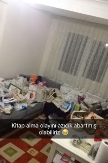 Cuma gecesi Tuba'nın oturma odası bu haldeydi :D