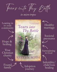 Tears into Thy Bottle is a completely closed door/spice-free women’s fiction novel. Though this novel features a married couple, it only vaguely alludes to their private life. There are a few kisses and some implication.